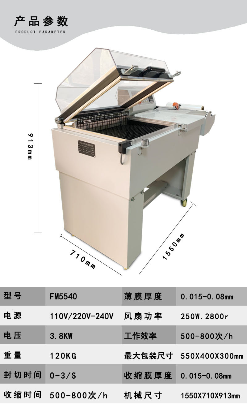 - 與分別使用封切機(jī)和熱收縮機(jī)相比,它能夠節(jié)省時(shí)間和人力成本,尤其適用于大規(guī)模的生產(chǎn)。例如,在食品包裝行業(yè),它可以快速地將大量食品包裝并進(jìn)行熱收縮,滿足企業(yè)高效生產(chǎn)的需求。