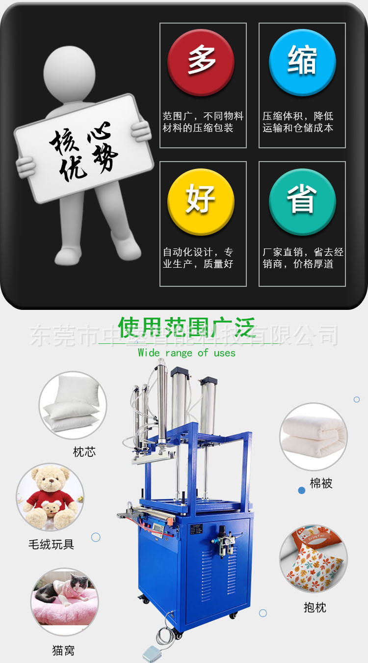 - 工作原理:將棉物料放置在壓縮腔室內(nèi),啟動壓縮系統(tǒng),液壓泵工作,使液壓缸內(nèi)的活塞帶動壓板向下運動,對棉物料進(jìn)行壓縮。當(dāng)達(dá)到預(yù)設(shè)的壓力后,壓縮系統(tǒng)停止工作。接著,包裝材料輸送機(jī)構(gòu)將包裝材料輸送到壓縮后的棉物料周圍,啟動封口系統(tǒng),加熱元件使封口條升溫,在一定的壓力下對包裝材料進(jìn)行封口,完成棉物料的壓縮封口包裝。
