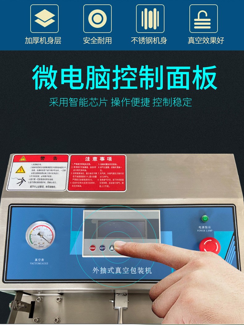 - 小型企業(yè)和商鋪:在小型食品加工店、禮品店等場(chǎng)所應(yīng)用廣泛。例如,小型食品加工店可以用外抽真空包裝機(jī)包裝自制的特色食品,如臘肉、香腸等,便于保存和銷售;禮品店可以對(duì)一些易受潮的禮品進(jìn)行真空包裝,提高禮品的質(zhì)量和保存期限。