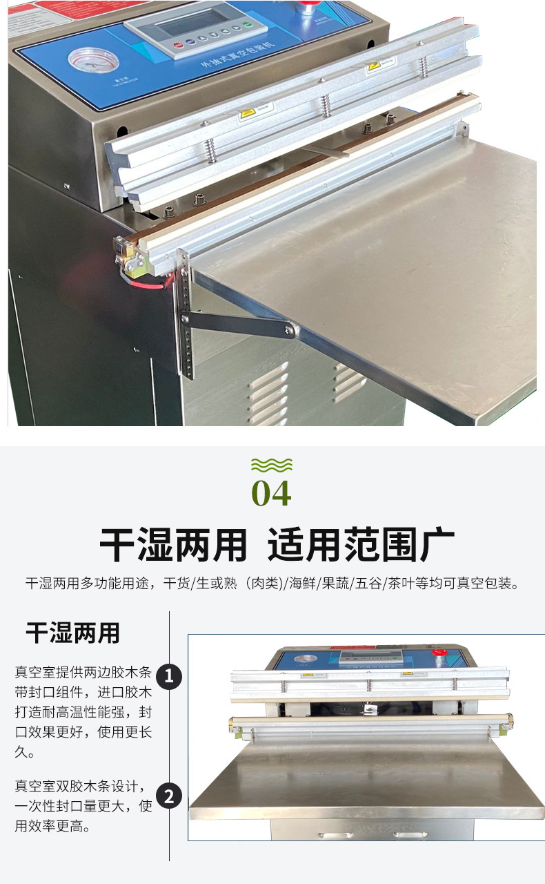 - 靈活性高:外抽真空包裝機(jī)不受包裝容器形狀和尺寸的限制。無(wú)論是大型的工業(yè)用真空袋,還是小型的家用真空袋,只要抽氣口能夠與抽氣嘴連接,就可以進(jìn)行真空包裝。例如,在包裝大型的工業(yè)零部件或不規(guī)則形狀的工藝品時(shí),外抽式的特點(diǎn)使得它能夠輕松應(yīng)對(duì),而內(nèi)抽式真空包裝機(jī)可能會(huì)因?yàn)檎婵帐页叽绲南拗贫鵁o(wú)法完成包裝。