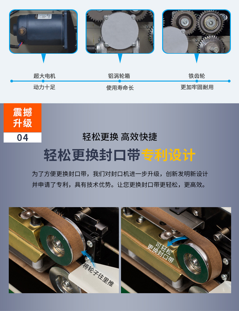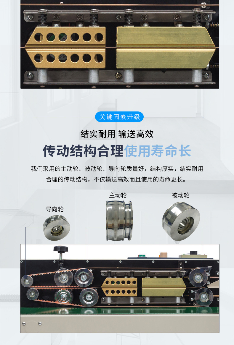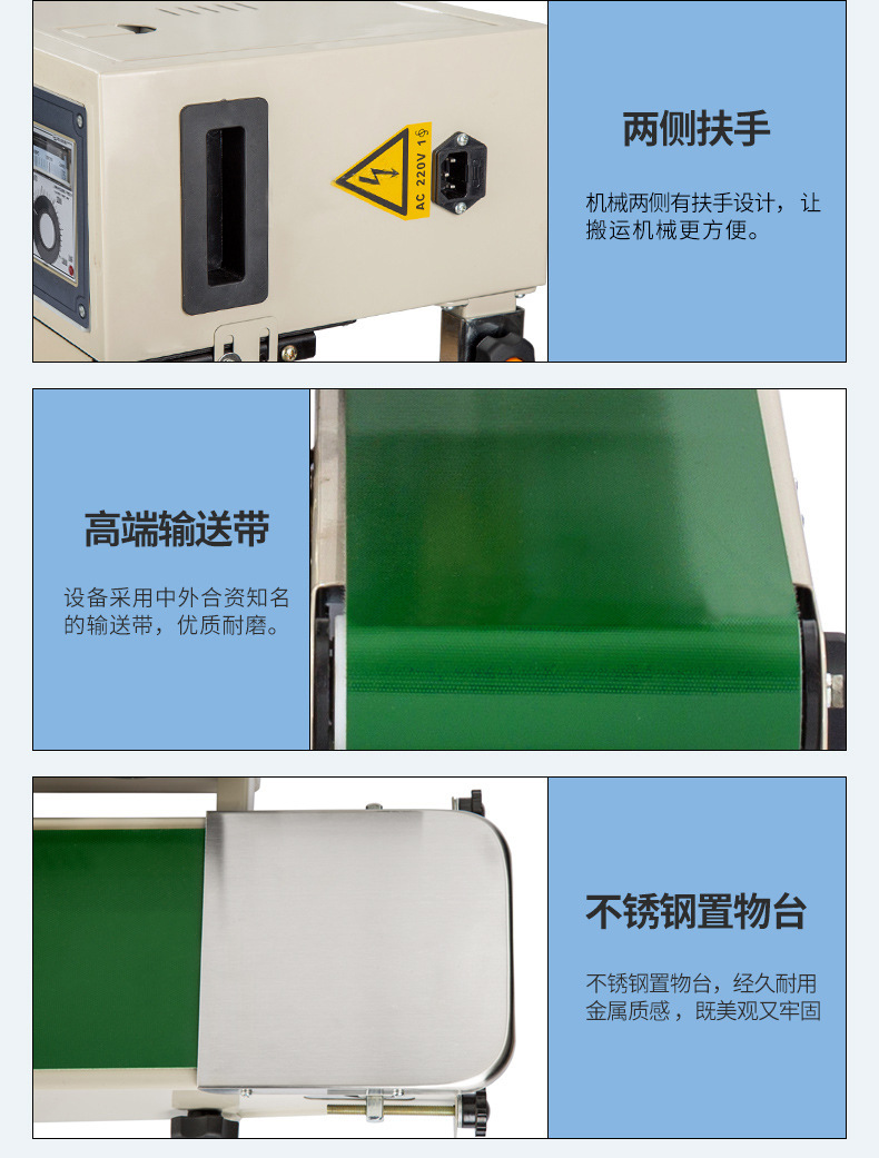 - 輸送帶是連續(xù)式封口機(jī)的關(guān)鍵部件之一,用于輸送待封口的包裝容器。輸送帶一般由橡膠或塑料等材料制成,具有一定的柔韌性和耐磨性。其速度可以根據(jù)生產(chǎn)需求進(jìn)行調(diào)節(jié),通過(guò)電機(jī)和調(diào)速裝置控制。在一些高速連續(xù)式封口機(jī)中,輸送帶的速度可以達(dá)到每分鐘數(shù)十米,以滿足大規(guī)模生產(chǎn)的需要。輸送帶的寬度也有多種規(guī)格,以適應(yīng)不同尺寸的包裝容器,通常寬度在 10 - 100 厘米之間。