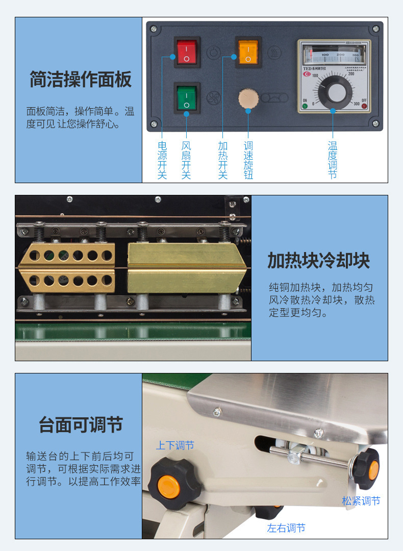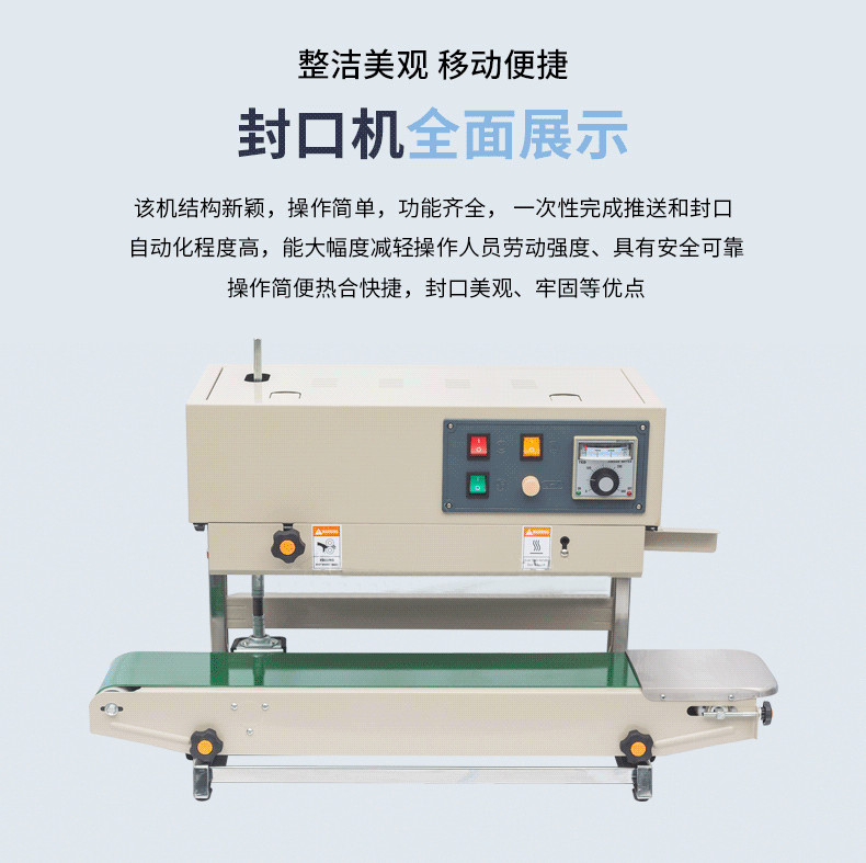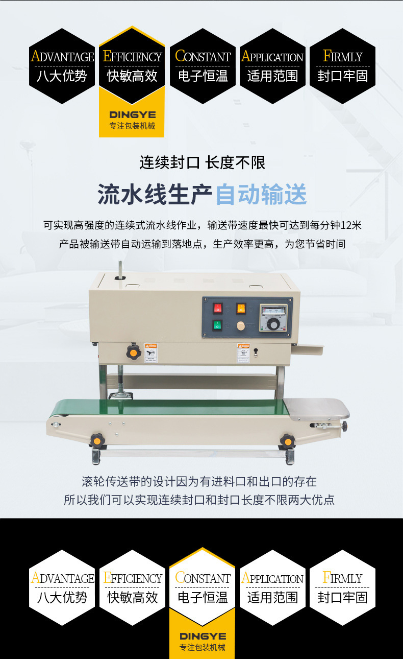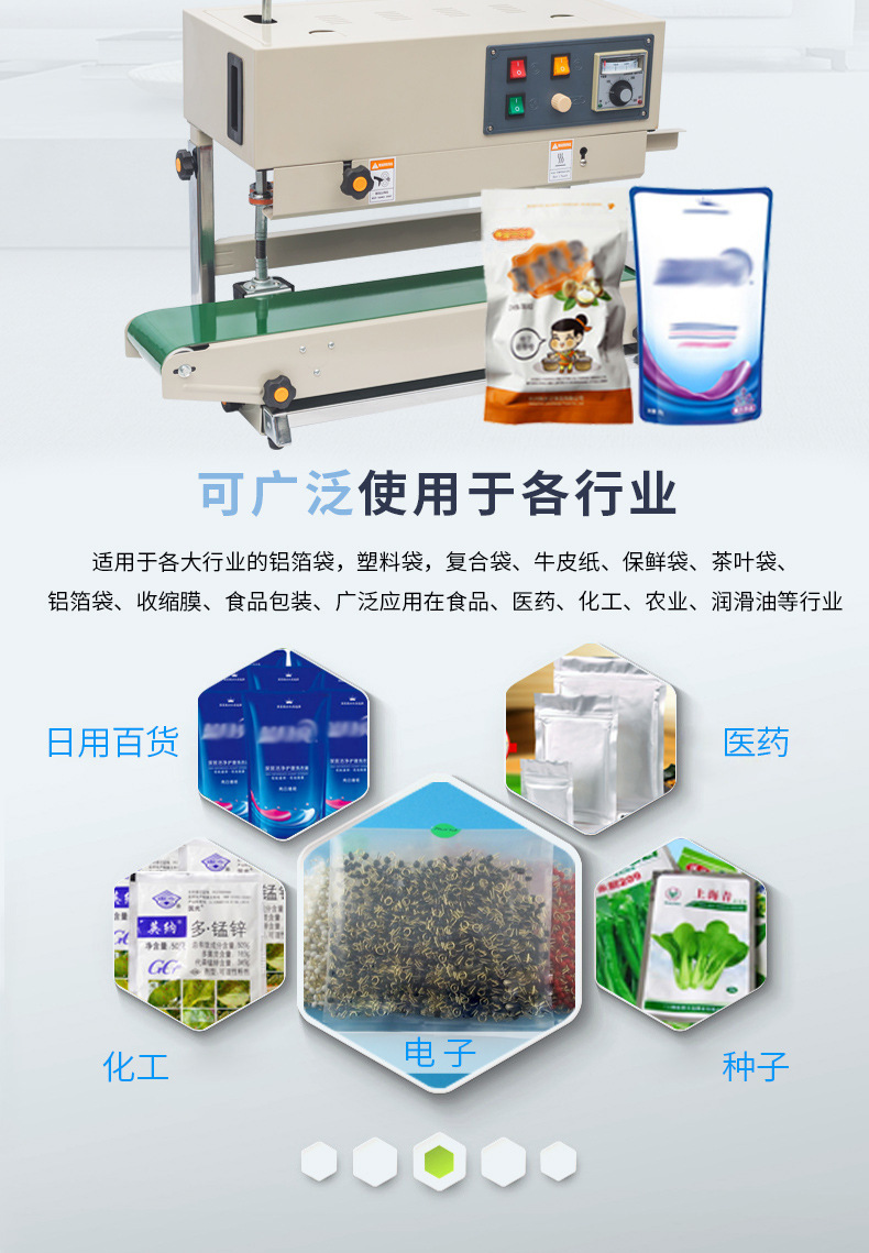 連續(xù)式封口機(jī)廣泛應(yīng)用于各種食品的包裝,如零食、飲料、速凍食品等