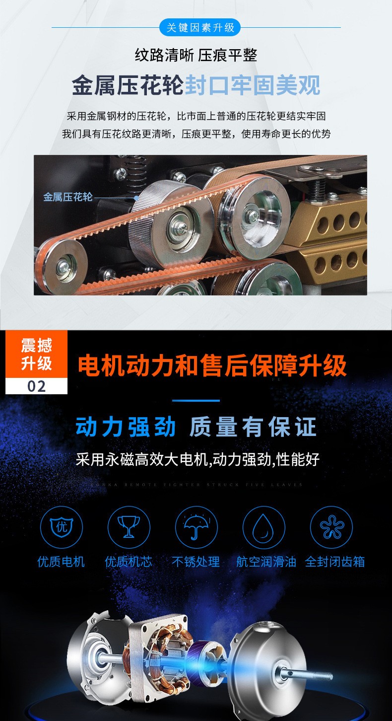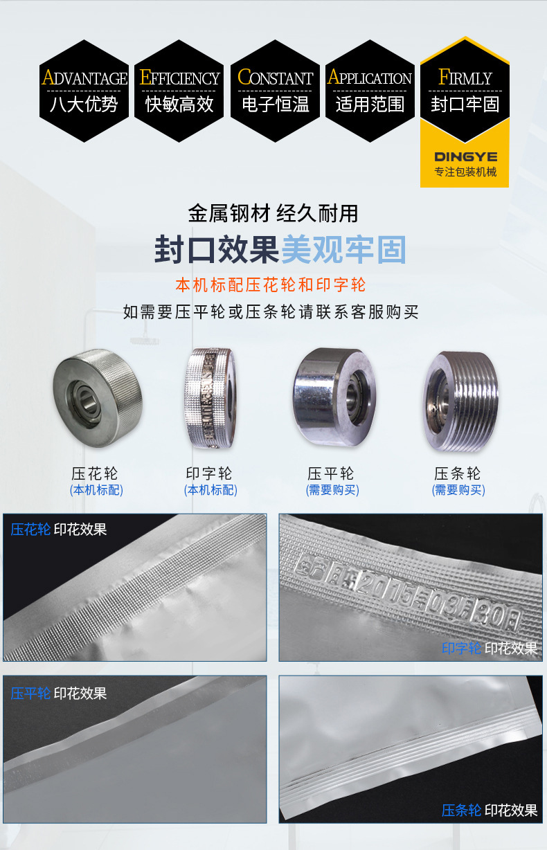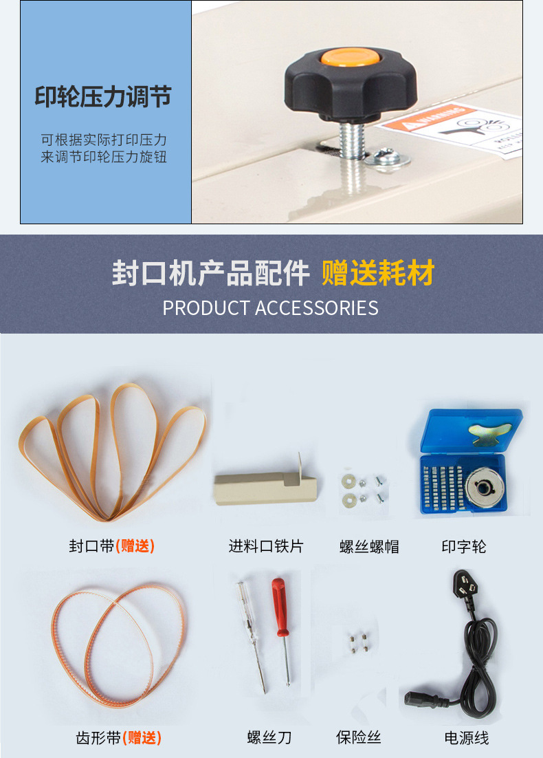 - 壓力裝置用于在封口時(shí)對(duì)包裝容器施加壓力,使封口處的包裝材料更好地黏合。通常是由一對(duì)壓力滾輪或壓力板組成。壓力滾輪可以通過(guò)彈簧或氣缸等方式施加壓力,其壓力大小可以調(diào)節(jié)。在封口過(guò)程中,包裝容器從壓力滾輪之間通過(guò),滾輪將熔化的包裝材料擠壓在一起,形成牢固的封口。壓力板的工作原理類(lèi)似,主要用于一些特殊形狀或需要較大壓力的包裝容器。