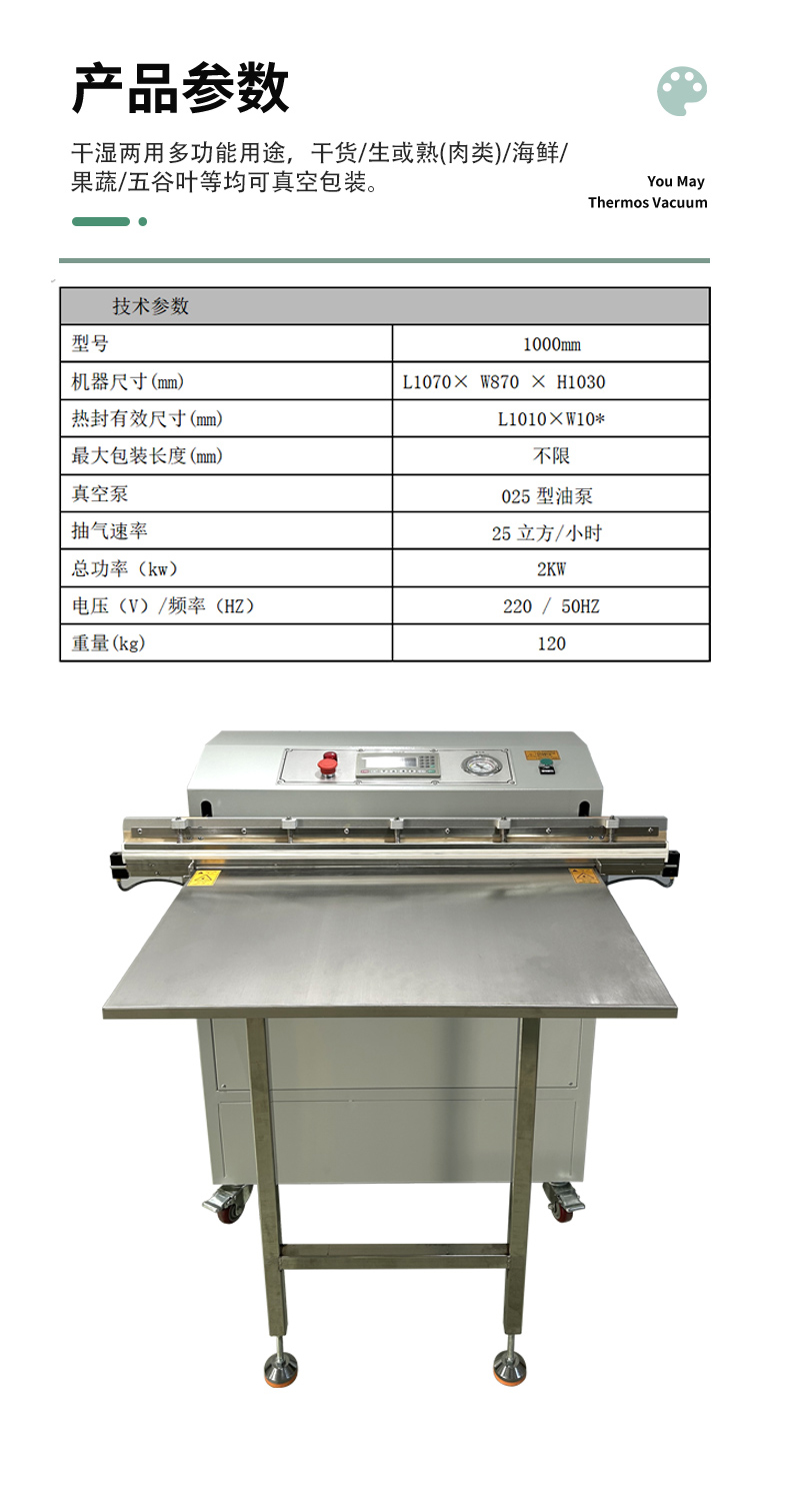 - 外抽式:無需頻繁開關(guān)真空室門,包裝袋放置和取出方便,包裝速度快,每分鐘可完成 3 - 5 次包裝循環(huán)。