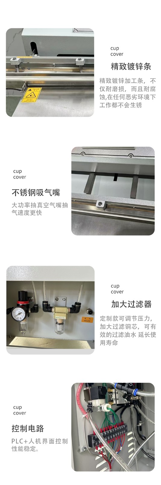 - 外抽式:一般采用立式結(jié)構(gòu),無密封真空室,由工作臺、抽氣裝置、封口裝置和控制系統(tǒng)等組成,結(jié)構(gòu)較為簡單,占地面積小。