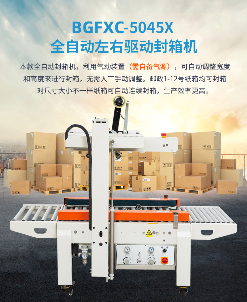 - 減少膠帶浪費:全自動封箱機能夠精確控制膠帶的使用長度,避免了人工封箱時可能出現(xiàn)的膠帶浪費現(xiàn)象,降低了包裝材料成本。