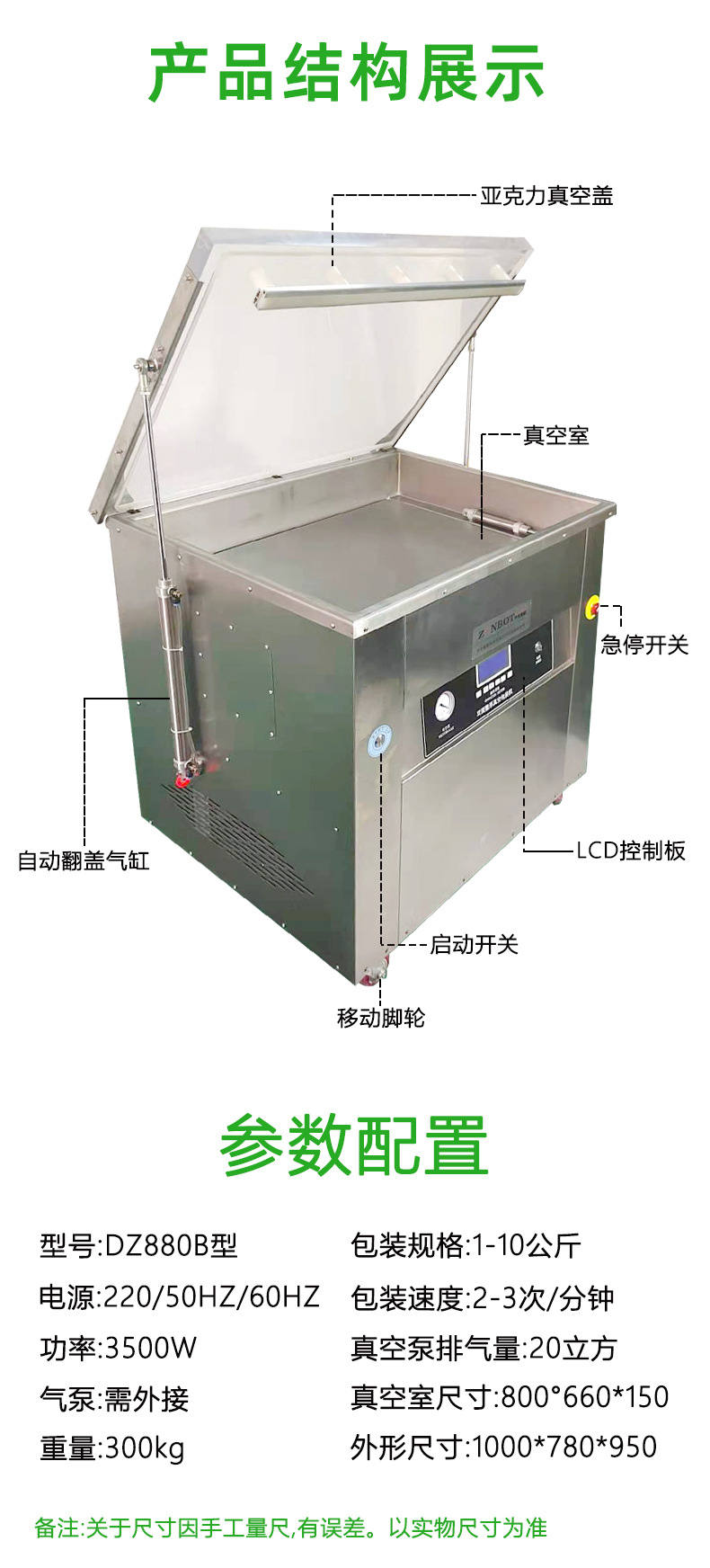 • 包括熱封條和壓力裝置。熱封條通常由加熱絲和耐高溫的材料構(gòu)成,當(dāng)真空包裝完成后,熱封條在壓力裝置的作用下,對(duì)包裝袋進(jìn)行加熱密封。壓力裝置能夠提供均勻的壓力,使封口牢固,防止空氣泄漏。封口系統(tǒng)的溫度和壓力可以根據(jù)包裝材料的類型和厚度進(jìn)行調(diào)節(jié)。