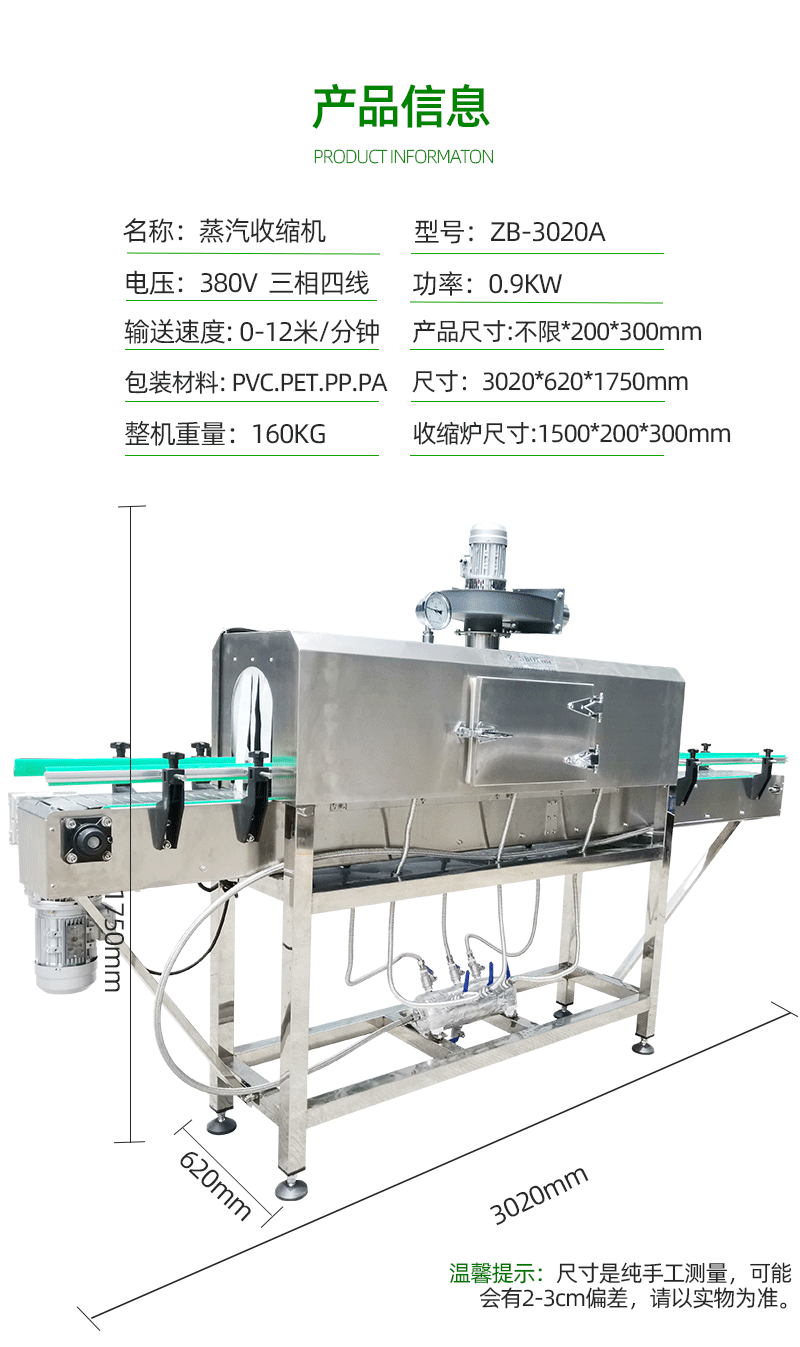 保證包裝一致性:由于蒸汽的溫度、壓力等參數(shù)相對容易控制,只要設(shè)置好合適的工藝參數(shù),就能夠保證每次包裝的收縮效果較為一致。這有助于提升產(chǎn)品整體包裝的標(biāo)準(zhǔn)化程度,使得同一品牌或同一批次產(chǎn)品的包裝質(zhì)量穩(wěn)定可靠,對于維護(hù)品牌形象和產(chǎn)品品質(zhì)至關(guān)重要。