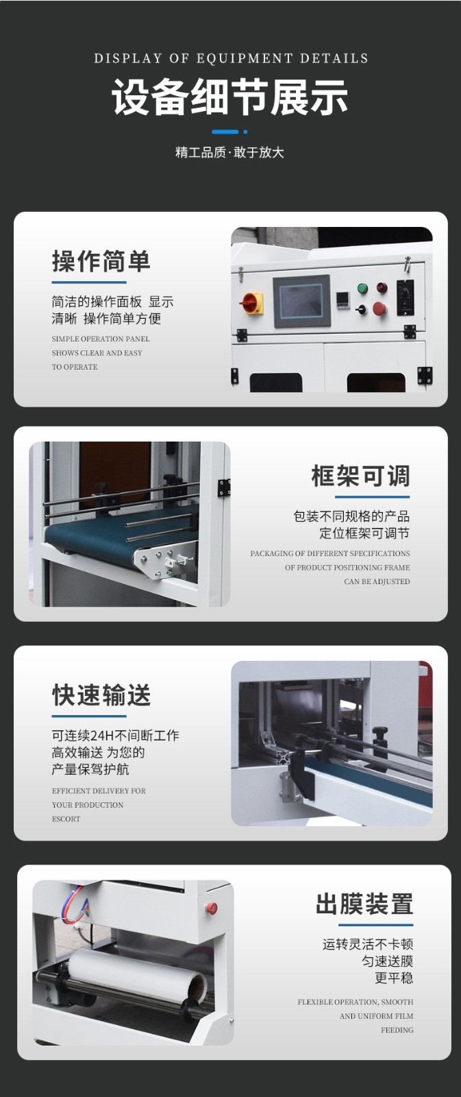 • 適應(yīng)性與靈活性:這種包裝機(jī)對(duì)產(chǎn)品的形狀、尺寸和包裝材料的適應(yīng)性較強(qiáng)。它可以通過簡單地調(diào)整機(jī)器參數(shù)來包裝各種形狀(如正方體、長方體、圓柱體甚至不規(guī)則形狀)和不同尺寸的產(chǎn)品。同時(shí),它能夠兼容多種包裝材料,包括不同厚度、材質(zhì)的塑料薄膜等。相比一些專用包裝機(jī),它的靈活性更高,能夠滿足企業(yè)多樣化的包裝需求。
