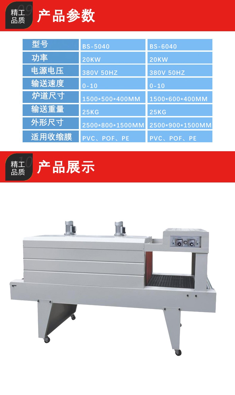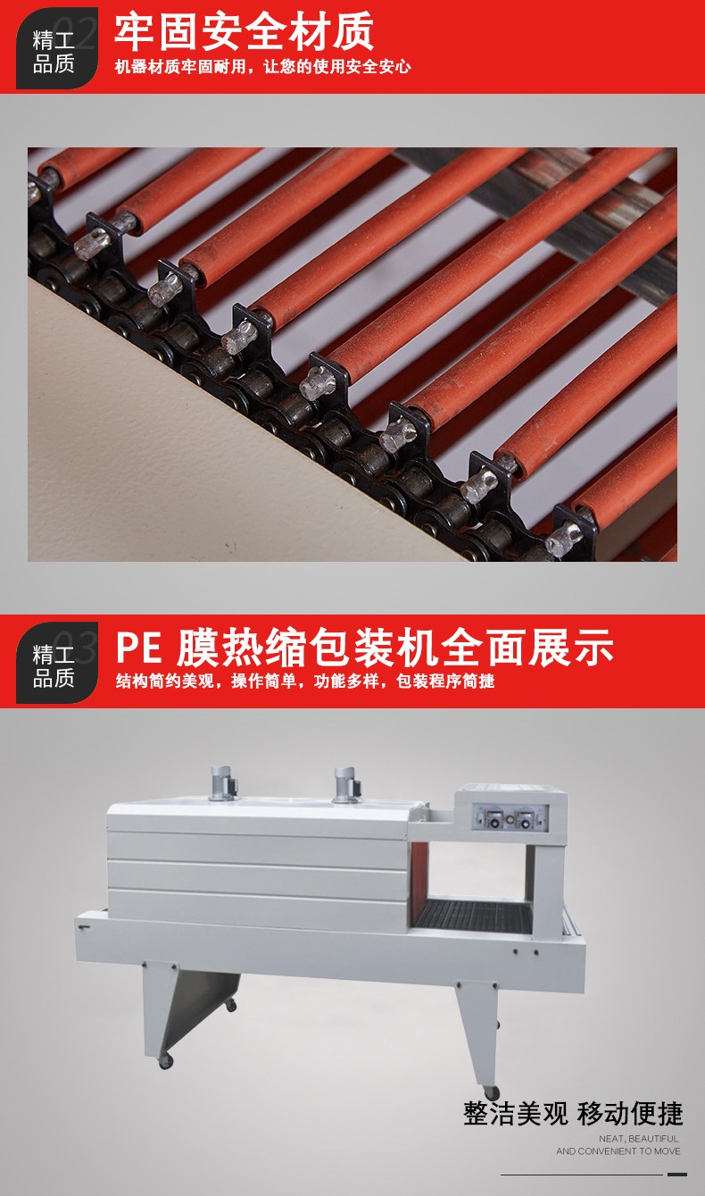 主要包括輸送帶和驅(qū)動(dòng)電機(jī)。輸送帶用于承載并輸送被 PE 薄膜包裹的產(chǎn)品通過加熱區(qū)域。驅(qū)動(dòng)電機(jī)控制輸送帶的速度,這個(gè)速度是可以調(diào)節(jié)的。其重要性在于確保產(chǎn)品在加熱區(qū)域停留足夠的時(shí)間,讓 PE 薄膜充分收縮。例如,如果輸送帶速度太快,PE 薄膜可能來不及完全收縮就離開了加熱區(qū)域,導(dǎo)致包裝質(zhì)量不佳;如果速度太慢,又會(huì)影響包裝效率。