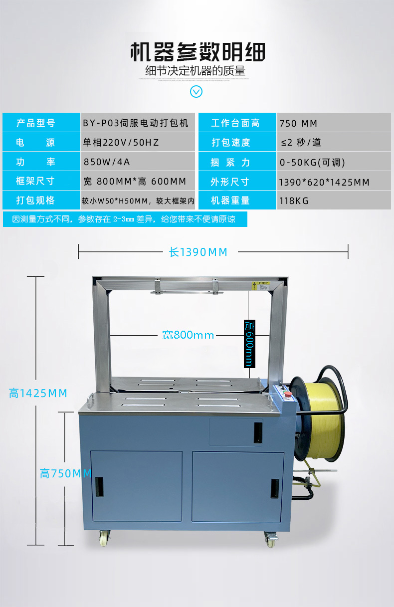 :根據(jù)預設的參數(shù),伺服電機驅動打包帶圍繞物品進行捆扎。在捆扎過程中,伺服電機精確控制打包帶的張力,確保打包帶能夠緊密地貼合在物品表面,同時又不會對物品造成損壞。完成捆扎后,切斷機構會自動將打包帶切斷,并對末端進行熱封或其他方式的處理,防止打包帶松開。