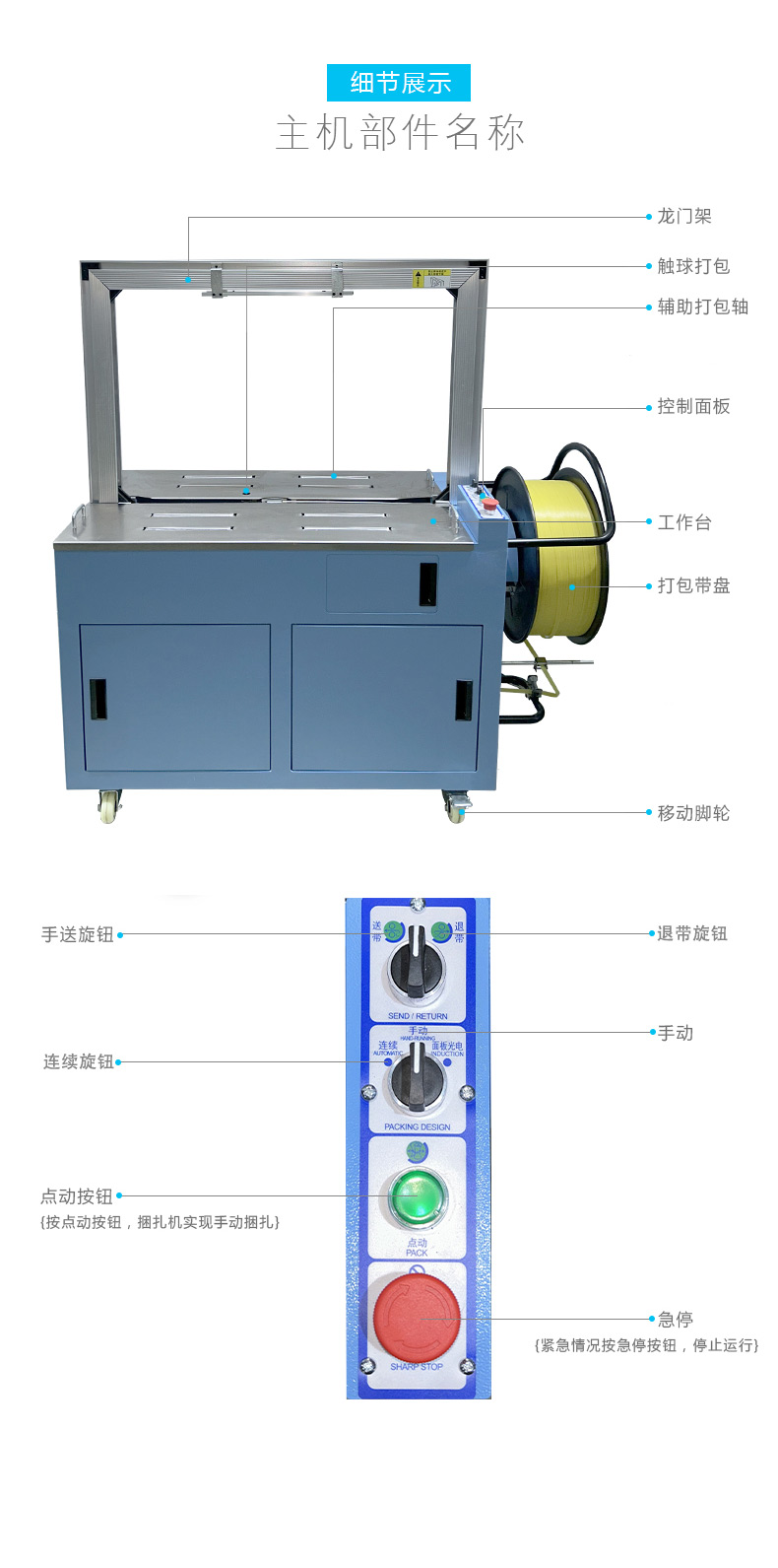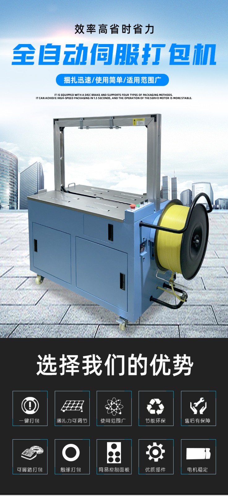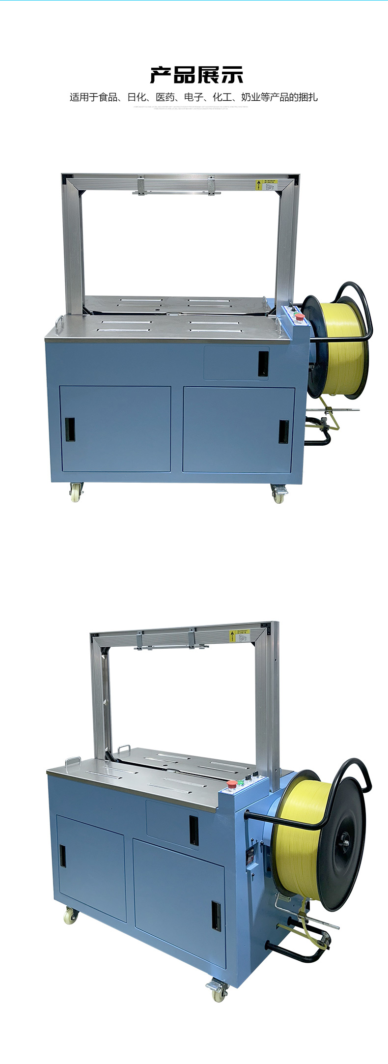 結構組成 伺服電機:作為核心部件,相比傳統(tǒng)電機,它能實現(xiàn)更高的控制精度和響應速度,可在捆扎時精準調整捆扎帶張力,保障捆扎的緊密與均勻。 控制系統(tǒng):負責智能化管理整個捆扎流程。通過傳感器與程序控制,實時監(jiān)測并調整捆扎速度、張力等參數(shù),用戶還能依不同產品需求設定相應捆扎參數(shù),滿足多樣化包裝需求。 捆扎裝置:一般采用熱合或熱熔方式固定捆扎帶。熱合是通過加熱使捆扎帶兩端熔合,形成牢固的捆扎效果,提高捆扎強度,防止運輸過程中松脫。 輸送系統(tǒng):負責將待捆扎產品送入捆扎機,常與輸送帶或自動化生產線等其他生產設備聯(lián)動,形