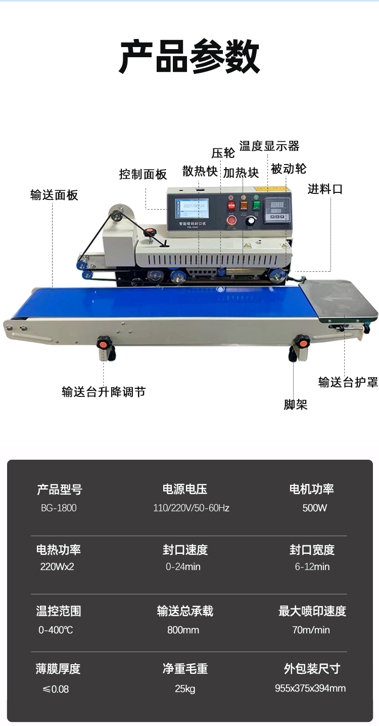 ZB-1800商用智能噴碼封口一體機(jī)噴碼打印日期茶葉食品外包裝