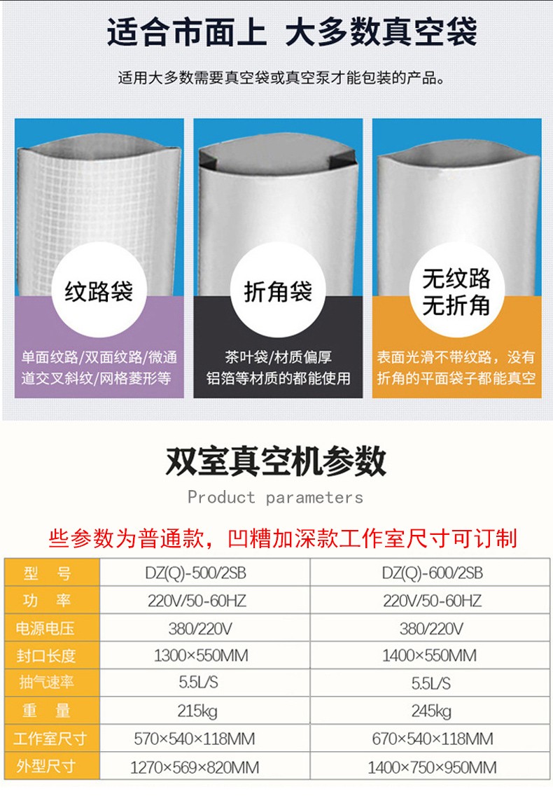 凹糟加深款雙室真空包裝機大米食品塑料袋子抽真空封口機