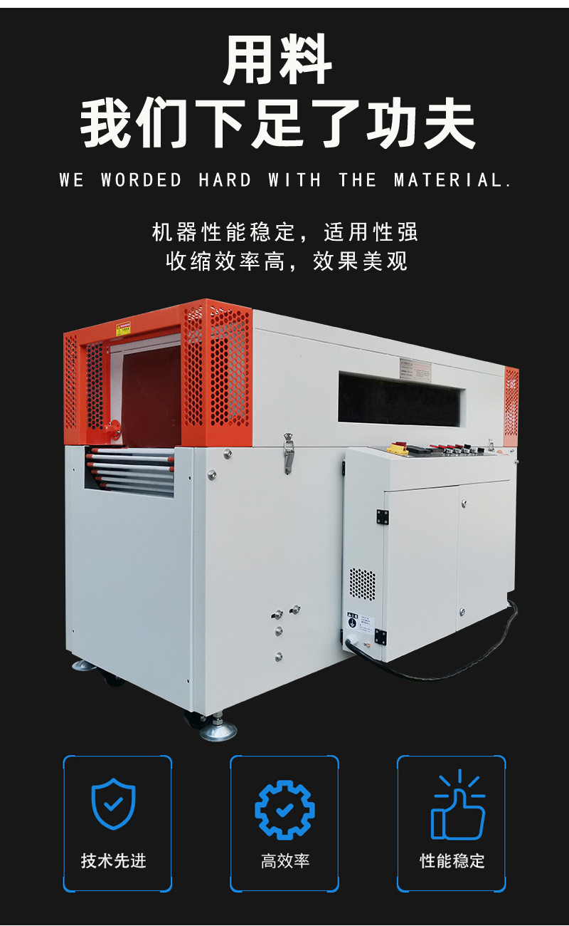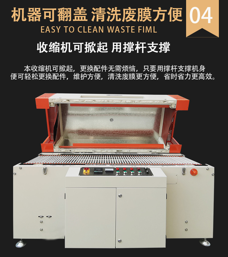 PRODUCT CENTER熱收縮機(jī)除了可以用于包裝物品外,還可以用于其他領(lǐng)域,如醫(yī)療、化工、電子等。隨著科技的不斷進(jìn)步,熱收縮機(jī)也在不斷創(chuàng)新和發(fā)展,未來的熱收縮機(jī)將會(huì)更加智能化、高效化,為我們的生活帶來更多的便利和福利。