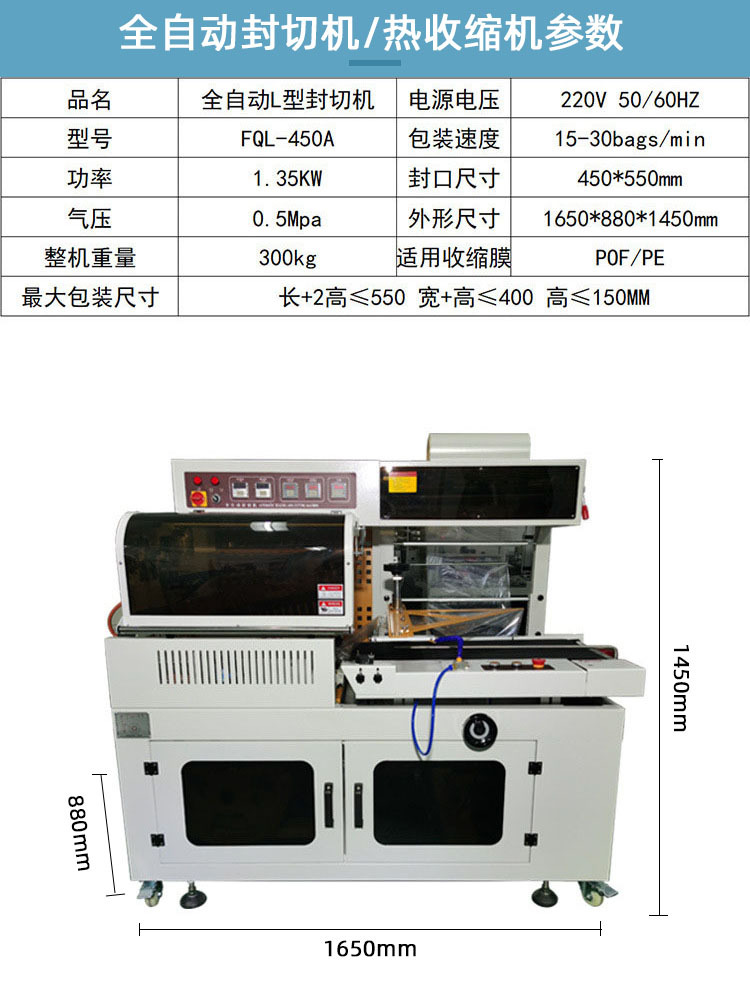 全自動L型封切機(jī)采用環(huán)保材料制成,無污染、低噪音,既能降低使用成本,又能滿足綠色環(huán)保要求。讓您的企業(yè)形象更上一層樓!