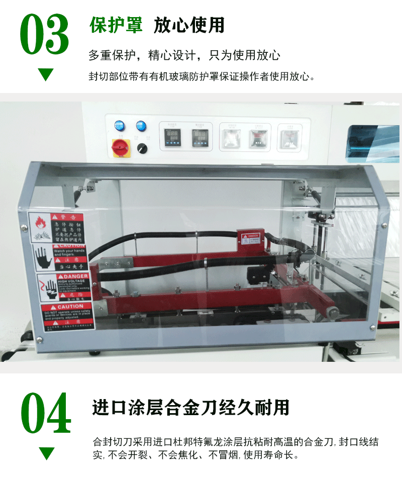 人性化操作界面,簡(jiǎn)單易懂,只需按下一個(gè)按鍵即可完成封切操作,大大減輕您的勞動(dòng)強(qiáng)度。同時(shí),設(shè)備還配備故障自診斷功能,有效提高設(shè)備安全性。