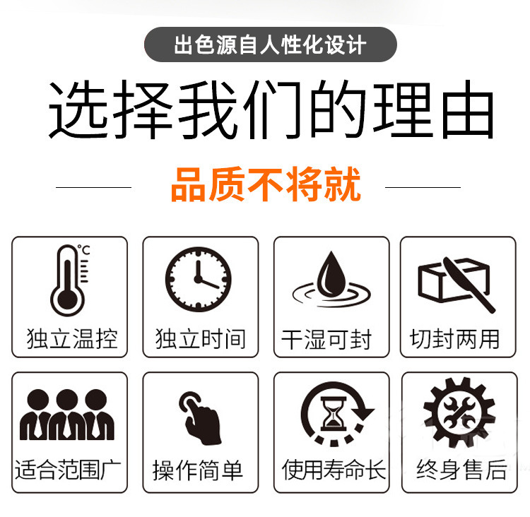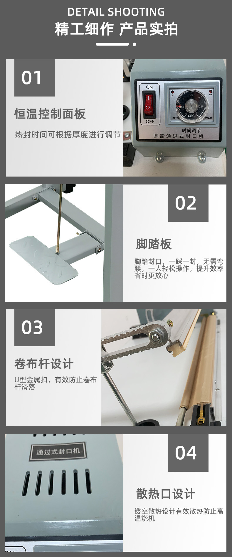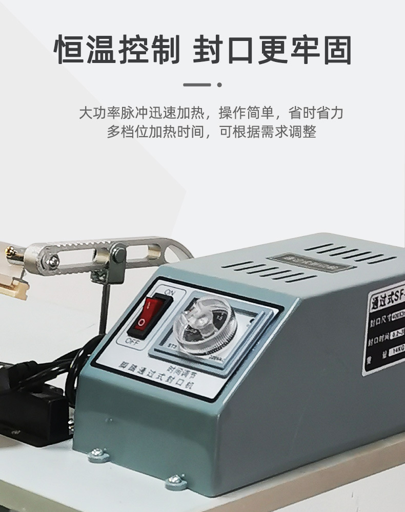 4. 多功能性:封口機可根據(jù)不同的包裝需求,進行不同的封口方式選擇,如常見的直封口、割口、連封等,提供了靈活多樣的包裝選擇。