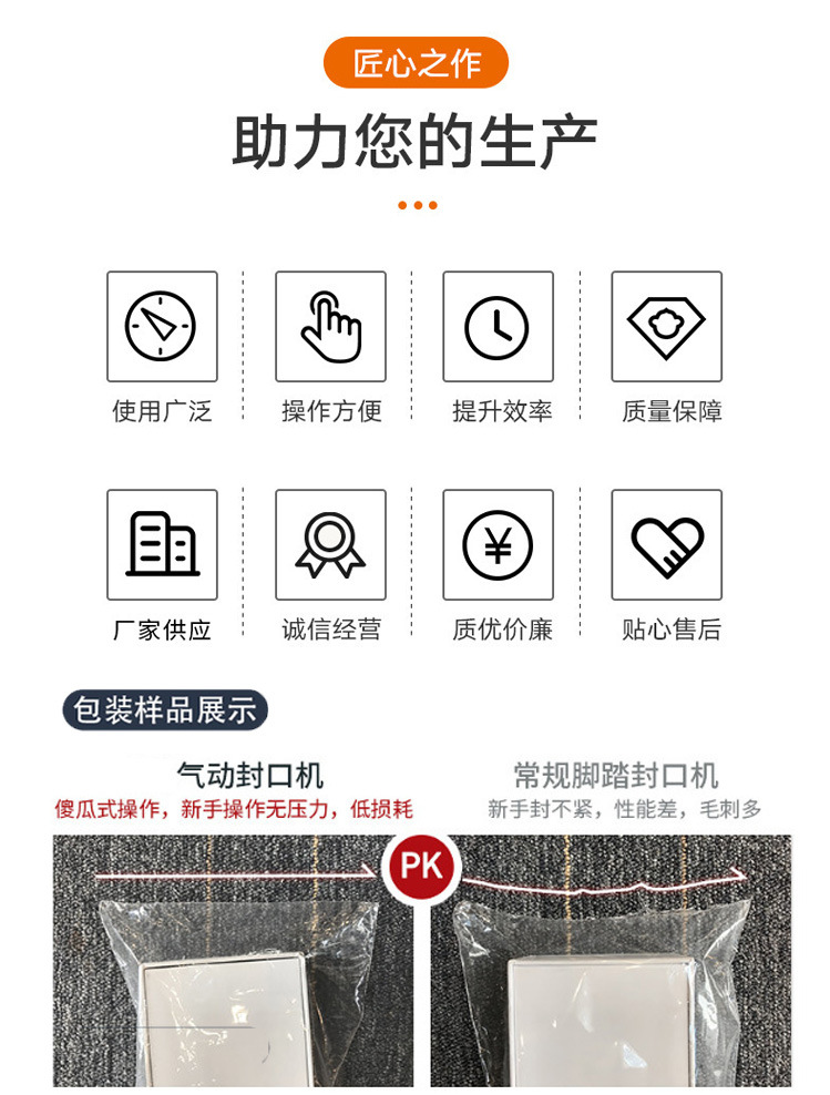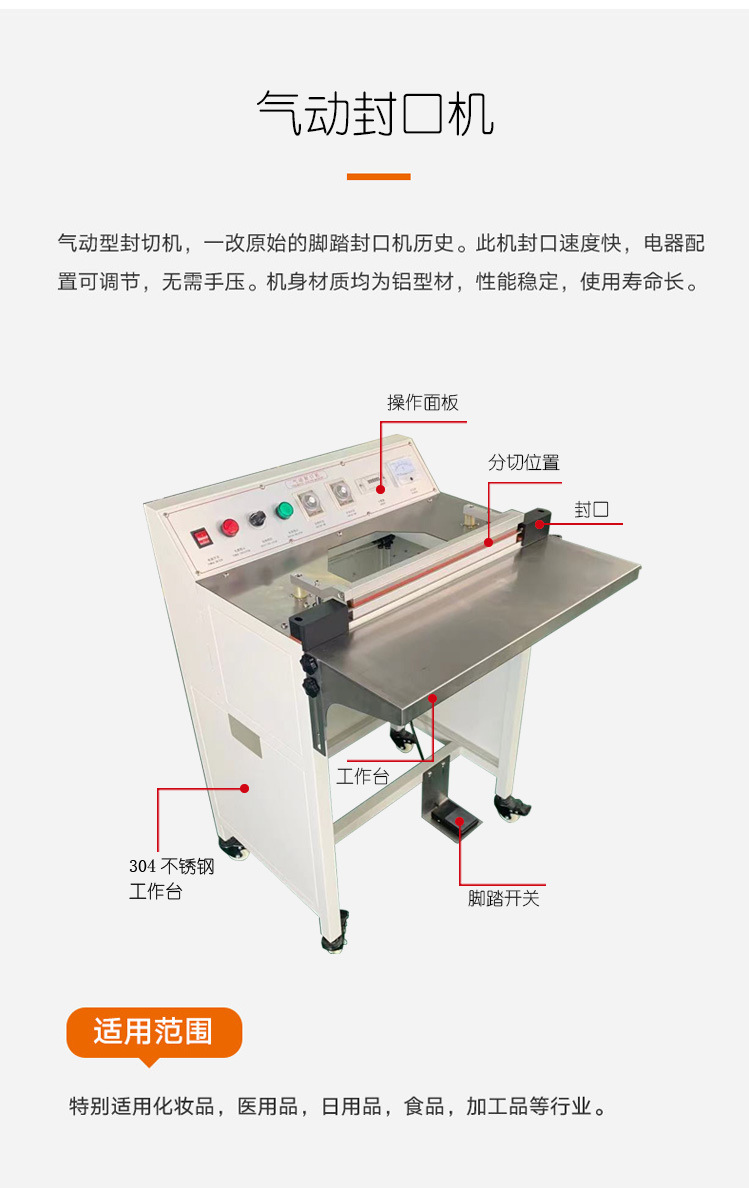 封口機(jī)適用的行業(yè)范圍比較廣,且具有使用方便、提高效率、提高產(chǎn)品質(zhì)量、增加競爭力等諸多優(yōu)點(diǎn)。因此,在面對(duì)高效、精準(zhǔn)、安全的生產(chǎn)需求的今天,封口機(jī)已成為許多企業(yè)的不可或缺的必需品。