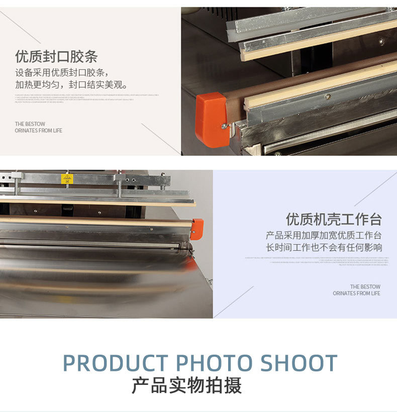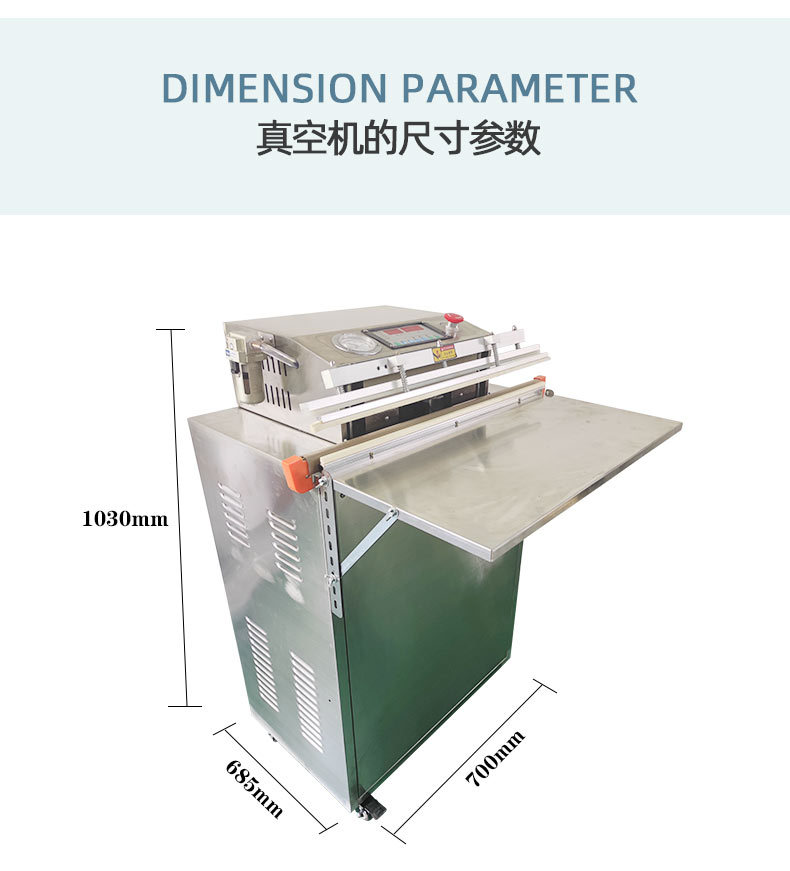 食品真空包裝機(jī)對(duì)香腸、肉制品、餅干等食品進(jìn)行真空包裝。經(jīng)過包裝后的食品可以防止霉變,保質(zhì)、保鮮而延長(zhǎng)產(chǎn)品的儲(chǔ)存期限,只需按動(dòng)真空蓋可自動(dòng)完成抽真空、封口。
