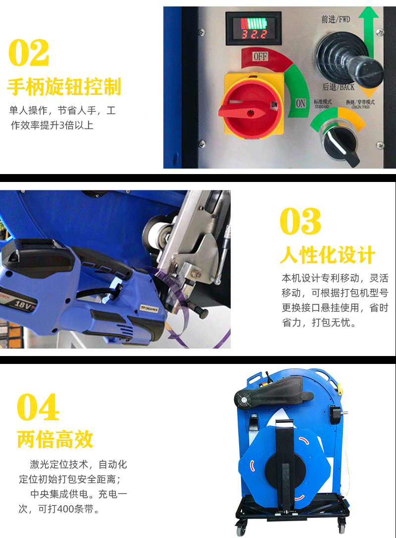 該打包機(jī)具有自動(dòng)上膠、自動(dòng)切帶、自動(dòng)封口等功能,操作簡(jiǎn)單,維護(hù)方便。同時(shí),它還具備故障自診斷和自動(dòng)保護(hù)功能,確保在使用過(guò)程中安全可靠。