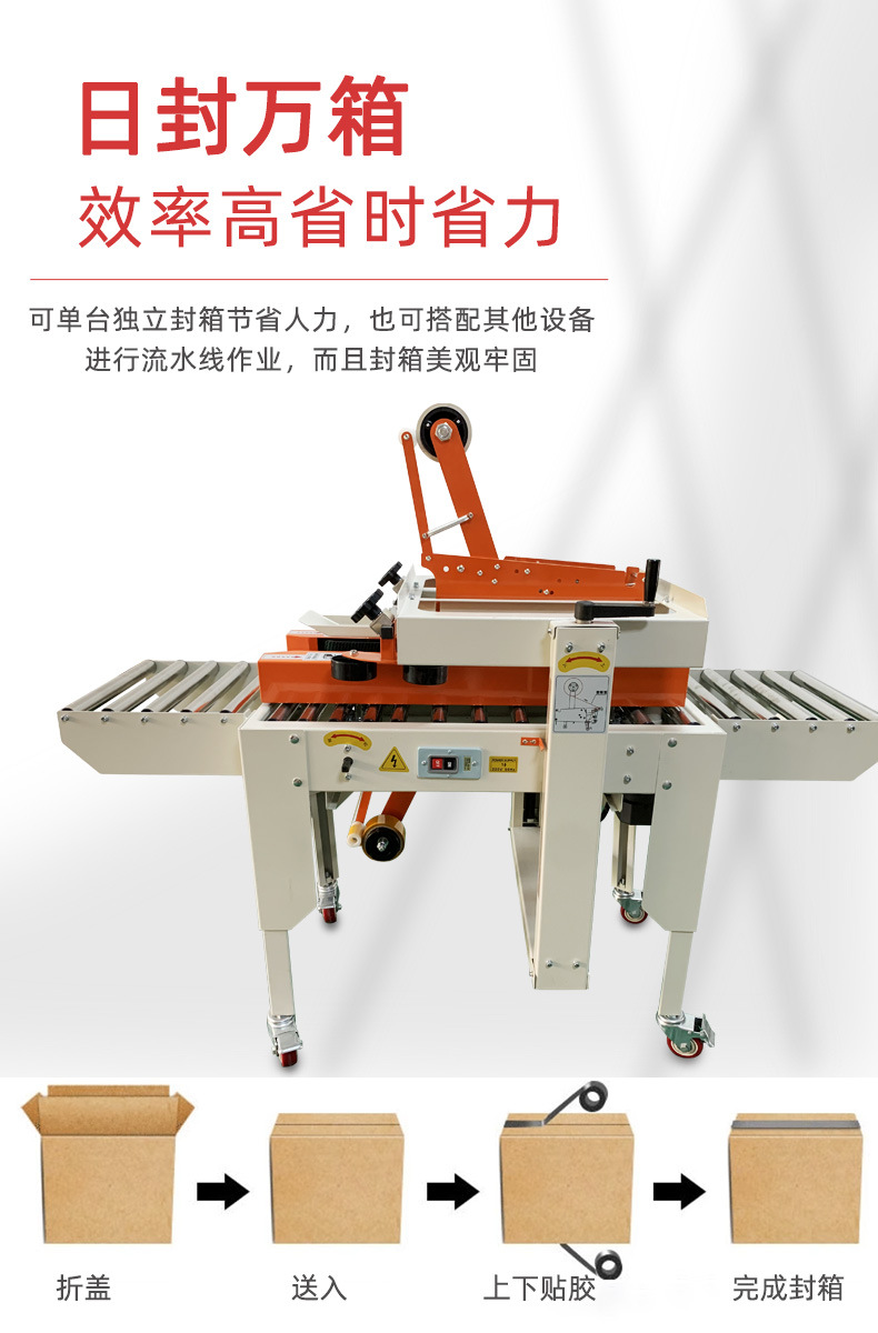 那么,封箱機(jī)是如何工作的呢?簡單來說,封箱機(jī)主要由以下幾個部分組成:送紙器、膠帶輸送器、封箱刀、切割器、調(diào)整器等。在使用封箱機(jī)之前,我們需要將紙箱放在送紙器上,然后讓封箱刀貼合在包裝箱的邊緣,進(jìn)行封口操作。整個過程簡單、快捷,大大提高了我們的工作效率。