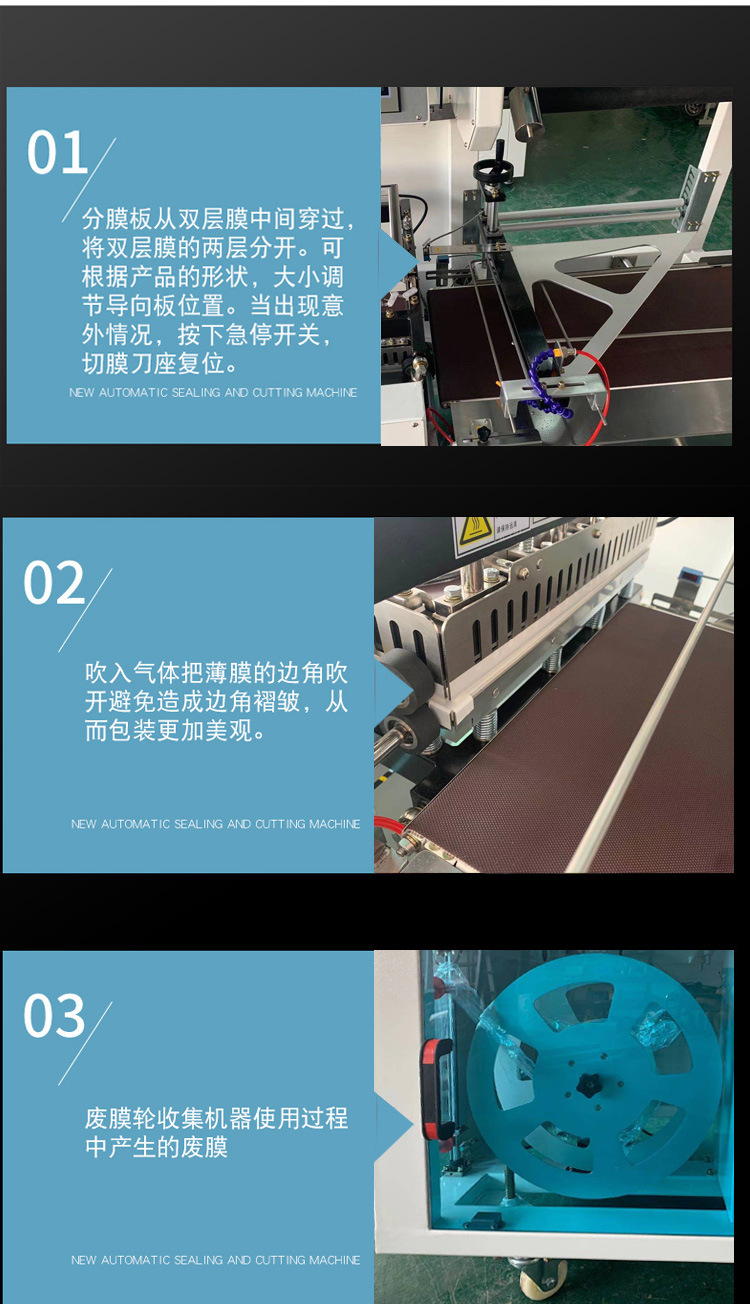 全自動封切機適用于需要四面密封的食品,飲料,罐頭,酒,日化,日用品等產(chǎn)品的集體包裝,包裝后的產(chǎn)品具有美觀,防潮,防塵,防破損等優(yōu)勢。