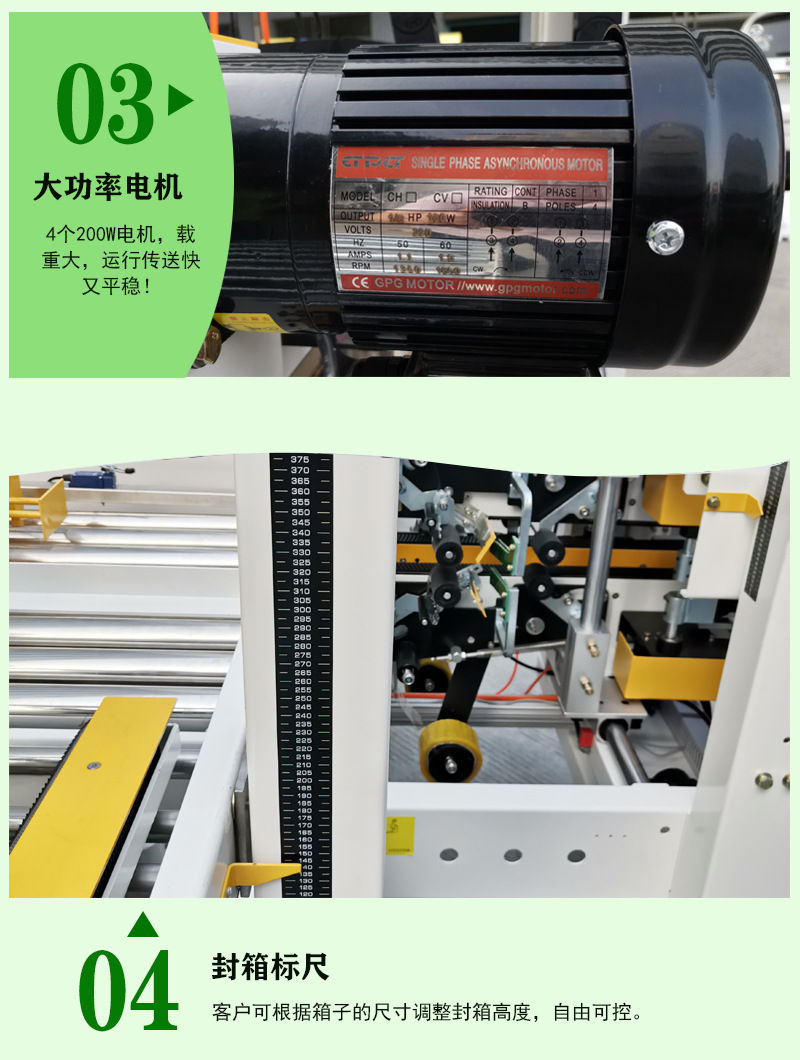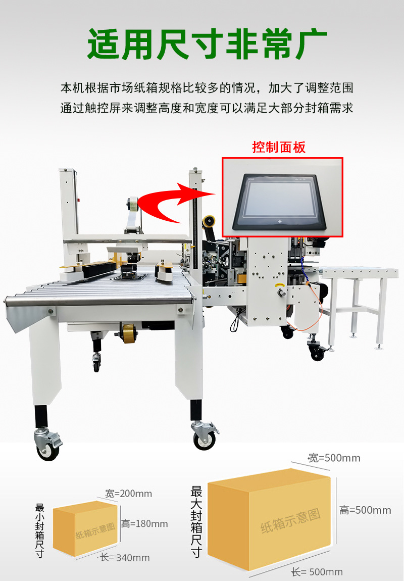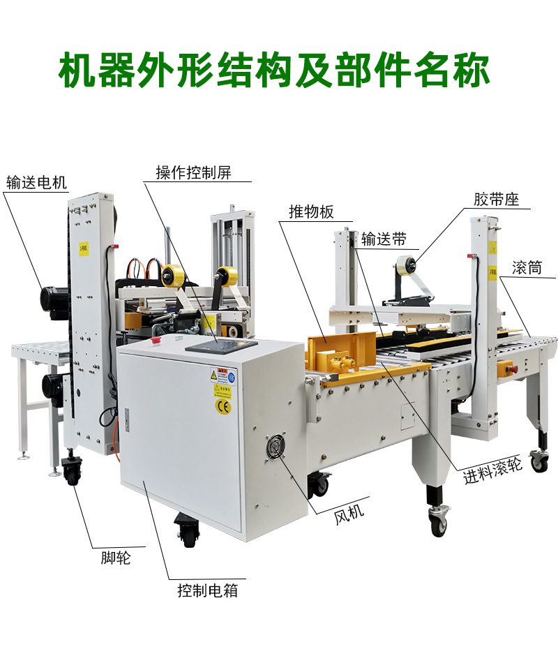 封箱機,也稱為Case sealer machine,主要用于紙箱的封箱包裝。它們不僅適用于單機作業(yè),也可以與流水線配套使用,是包裝流水線作業(yè)中不可或缺的設(shè)備。封箱機的功能包括自動折疊、粘合和封口紙箱,通過先進的感應(yīng)和控制技術(shù),能夠自動檢測和調(diào)整紙箱尺寸,按照設(shè)計要求進行折疊和封口操作,大大提高了包裝的效率和一致性,減少了人工操作的錯誤和勞動強度。