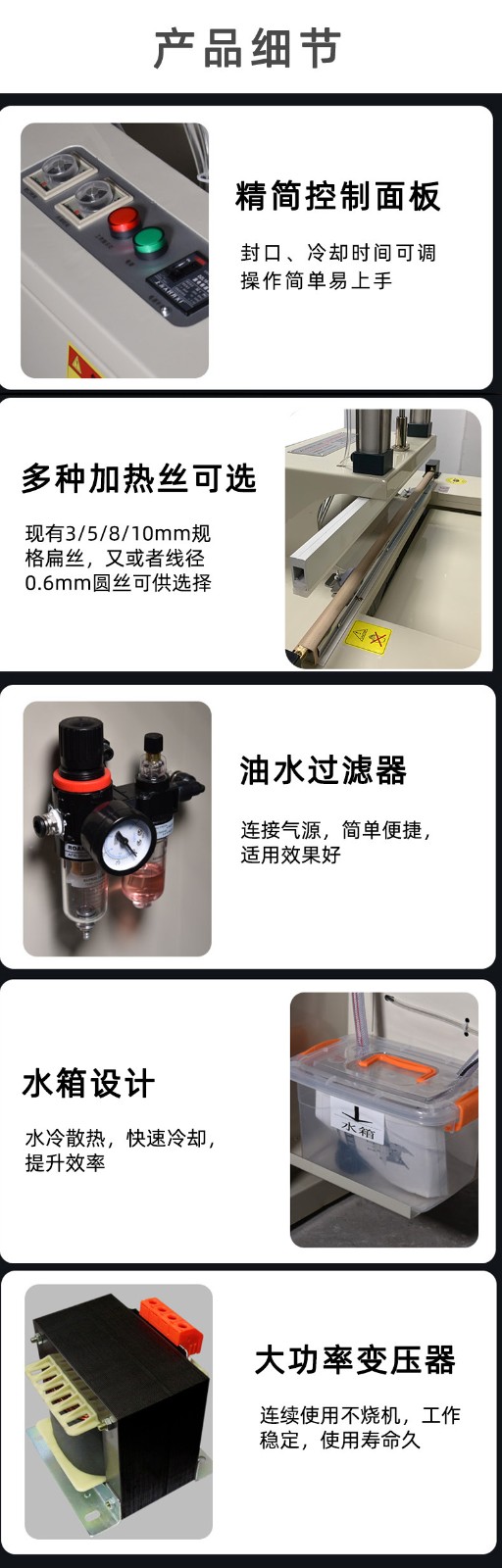 封口包裝機的主要功能是將充填有包裝物的容器進行封口。?這種機械在產(chǎn)品裝入包裝容器后,?通過不同的封口方式,?如遠(yuǎn)紅外線輻射直接加熱PVC/POP收縮膜,?達(dá)到完美的收縮包裝效果,?從而實現(xiàn)密封、?防塵、?防潮和防盜性。?封口包裝機的應(yīng)用范圍廣泛,?包括食品、?餐具、?熟食品、?肉類、?方便面、?面食、?飲料、?糖果、?文化用品、?超市商品、?五金工具、?日用百貨、?工藝品、?化工產(chǎn)品、?木制品、?印刷制品、?塑料制品、?玻璃制品、?電子元件等產(chǎn)品