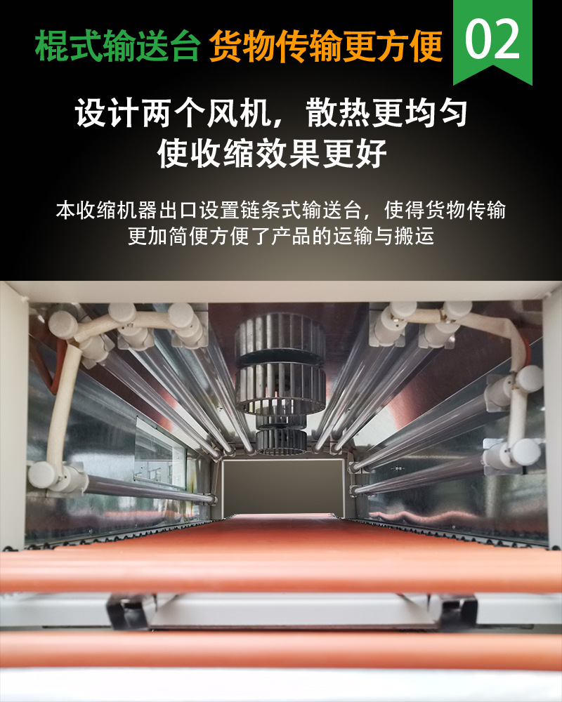 熱收縮機(jī)通過(guò)采用收縮膜包裹在產(chǎn)品或包裝件外面,?然后加熱使材料收縮裹緊產(chǎn)品或包裝件,?從而充分顯示物品的外觀,?提高產(chǎn)品的展銷性,?增加美觀及價(jià)值感。?這種包裝方式不僅能密封產(chǎn)品,?還能有效防潮、?防污染,?保護(hù)商品免受來(lái)自外部的沖擊,?具有一定的緩沖性。?特別是當(dāng)包裝易碎品時(shí),?能有效防止器皿破碎時(shí)飛散,?同時(shí)也能減低產(chǎn)品被拆、?被竊的可能性。?